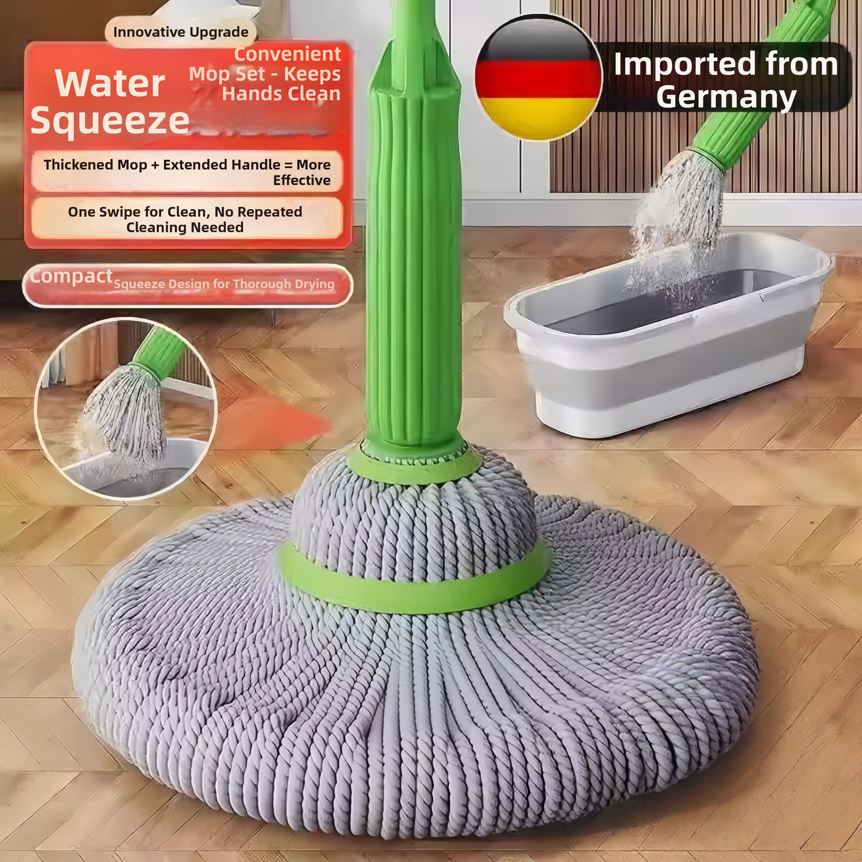 Auto-wring Bamboo Fiber Multi-function Mop