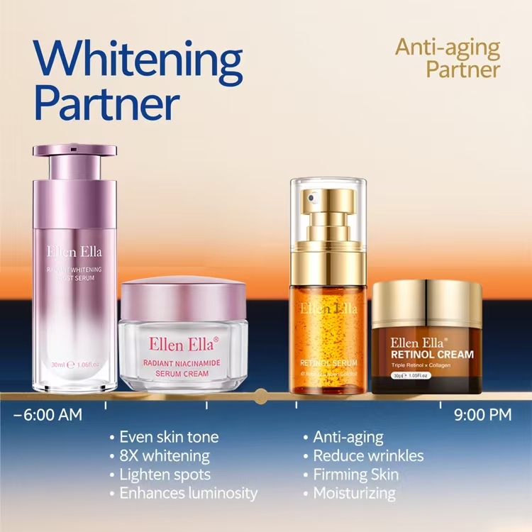 Ellen Ella Skincare Set 5pcs Niacinamide Whitening Serum+Cream And Retinol Anti Aging Serum+Cream
