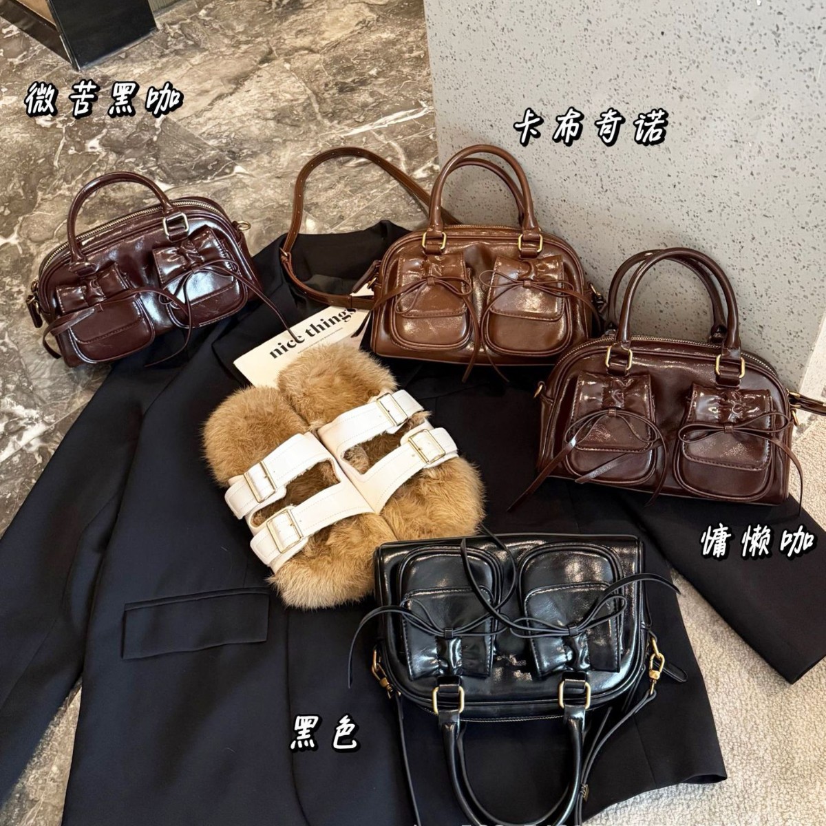 Korean Style Oil Wax Genuine Leather Bowknot Bowling Bag Handbag for Women One-Shoulder Crossbody High-end Leather Multi-pocket Pillow Bag Sweet and Cute #11156 Presyo 3,087 Piso