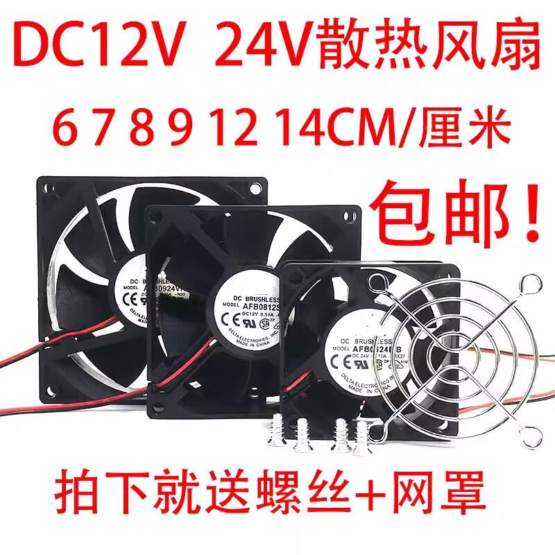 Delta New 6 7 8 9 12cm 12V24V Silent Power Amplifier Inverter Chassis Power Cooling Fan Computer Hardware Monitor Accessories