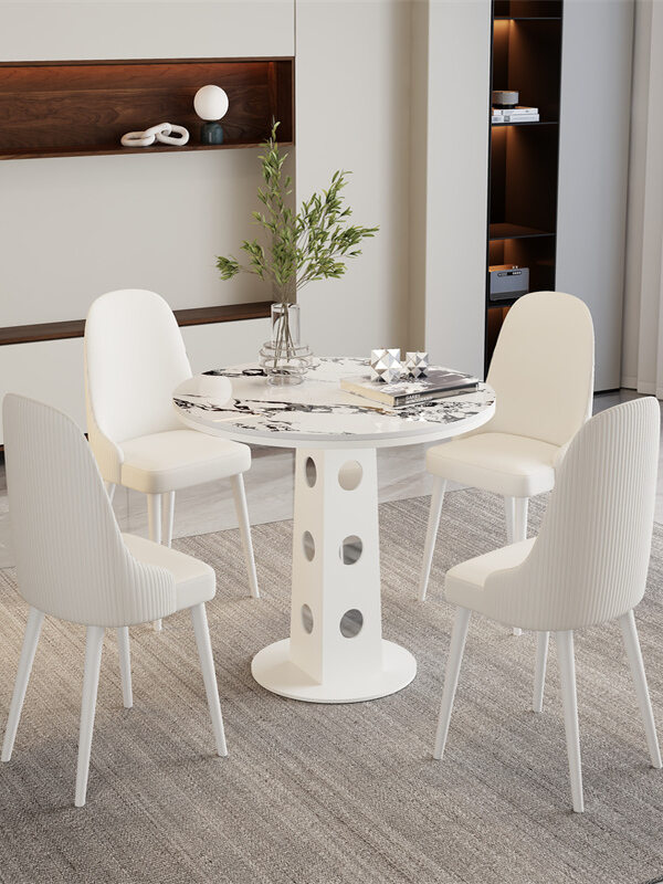 Elegant Stainless Steel Cream-colored Porcelain Table