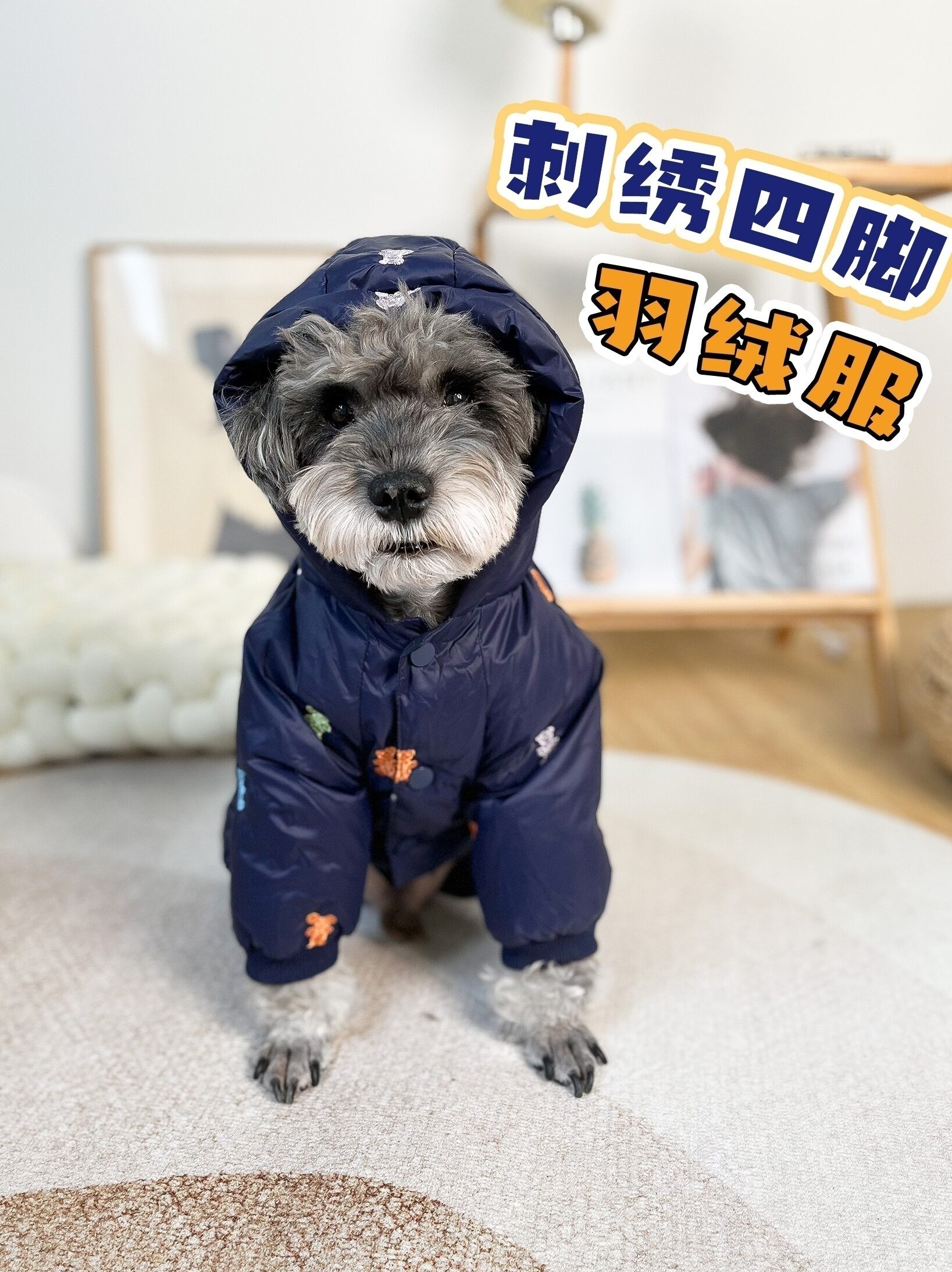 Winter Quilted Dog Jacket with Embroidery Warm Four-Legged Dog Clothes Hooded down Coat for Schnauzer Teddy Bichon Pet Supplies