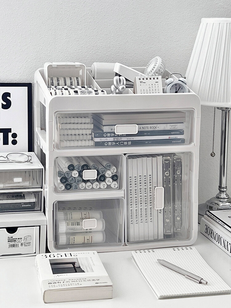 Large Capacity Desktop Organizer Box Office Desk Supplies Storage Rack Book Magazine Paper Clip Pencil Sharpener Arrangement