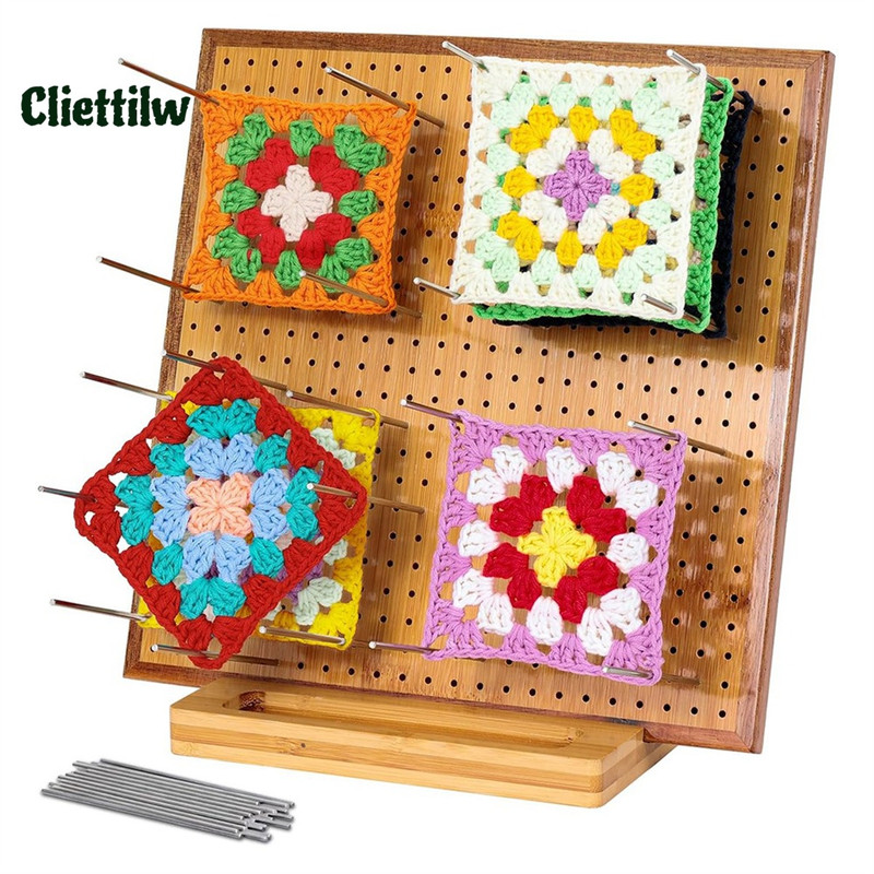 Bamboo Granny Square Block Board 11.8 Inch for Crochet Block Board with 20 Needles/Pegs for Crochet Knitting