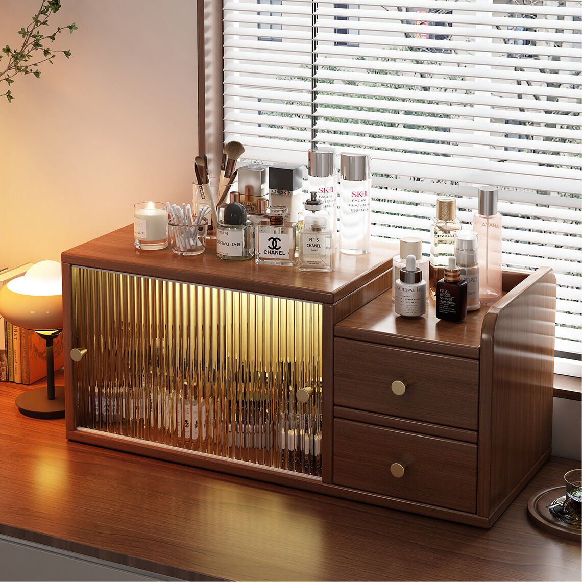 Simple Glass Desktop Organizer Multi-layer Storage Rack Bedroom Cosmetic Dustproof Bed Curtain Table Top Shelf Rack
