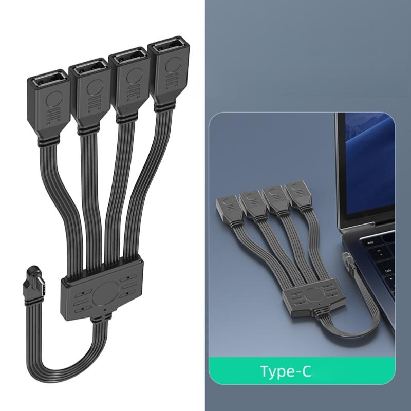 Type C to USB Charging And Data Transfer 1 to 4 For Connecting Keyboards Mouse Printers And External Drive To Laptops